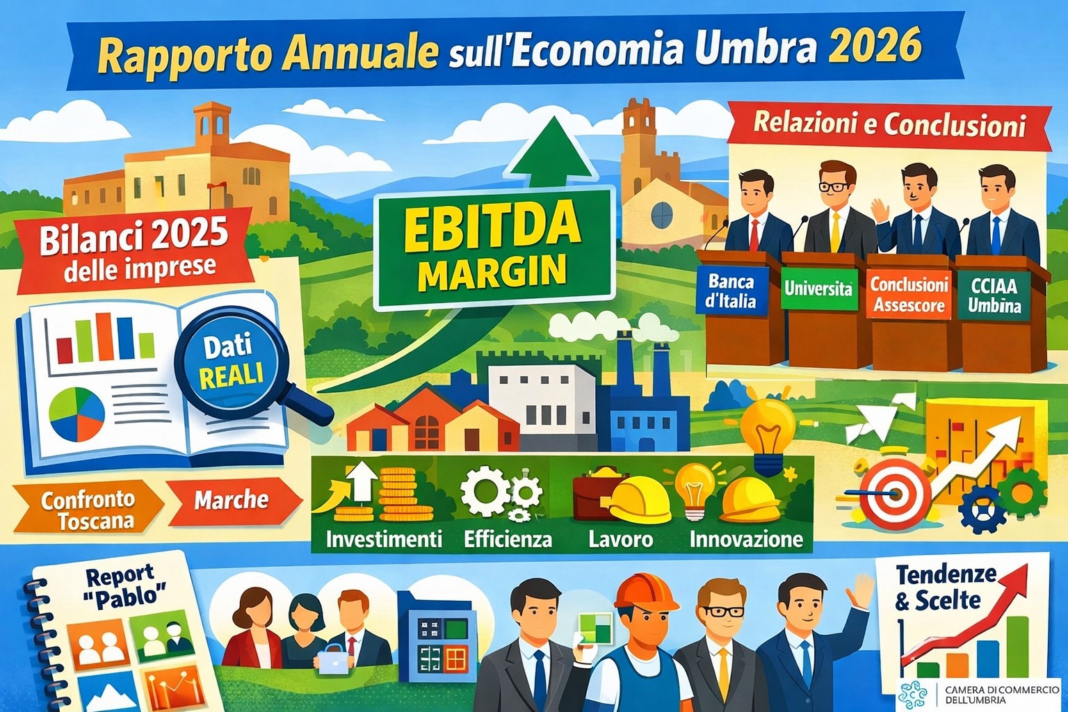 Ai partecipanti sarà presentato anche il report “Pablo”, un documento sinottico che affianca ai dati economici una lettura più ampia sociale e culturale dell’Umbria, seguendone l’evoluzione e confrontandola con media nazionale, Toscana e Marche. Un tassello importante: perché dietro ogni bilancio ci sono persone, competenze, territori, e la capacità di un sistema di trattenere e attrarre valore.
