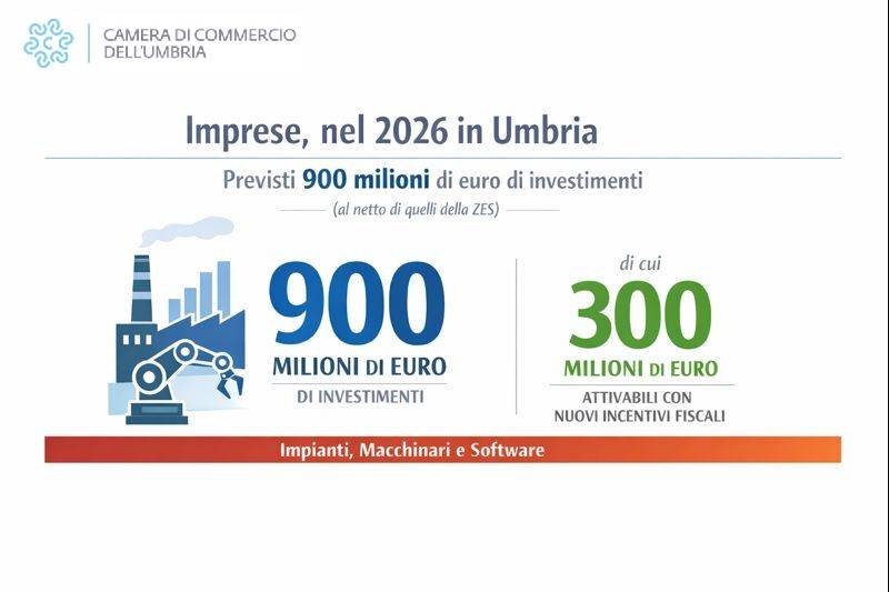 Nel 2026, in Umbria, gli investimenti in impianti, macchinari e software possono avvicinarsi ai 900 milioni di euro.