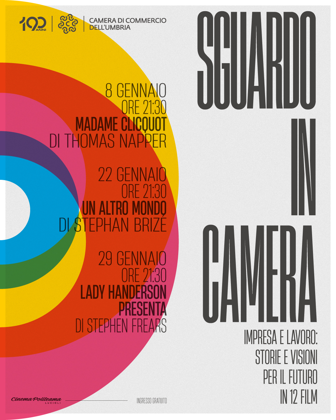 Dopo il successo delle proiezioni al PostModernissimo, allo Zenith e al Méliès di Perugia, Sguardo in Camera – Impresa e Lavoro, storie e visioni per il futuro in 12 film approda al Cinema Politeama Lucioli di Terni. Il progetto cinematografico ideato, promosso e finanziato dalla Camera di Commercio dell’Umbria nell’ambito delle celebrazioni per i 190 anni dalla nascita dell’Ente, prosegue così il suo percorso regionale con tre giovedì di cinema d’autore a ingresso completamente libero.